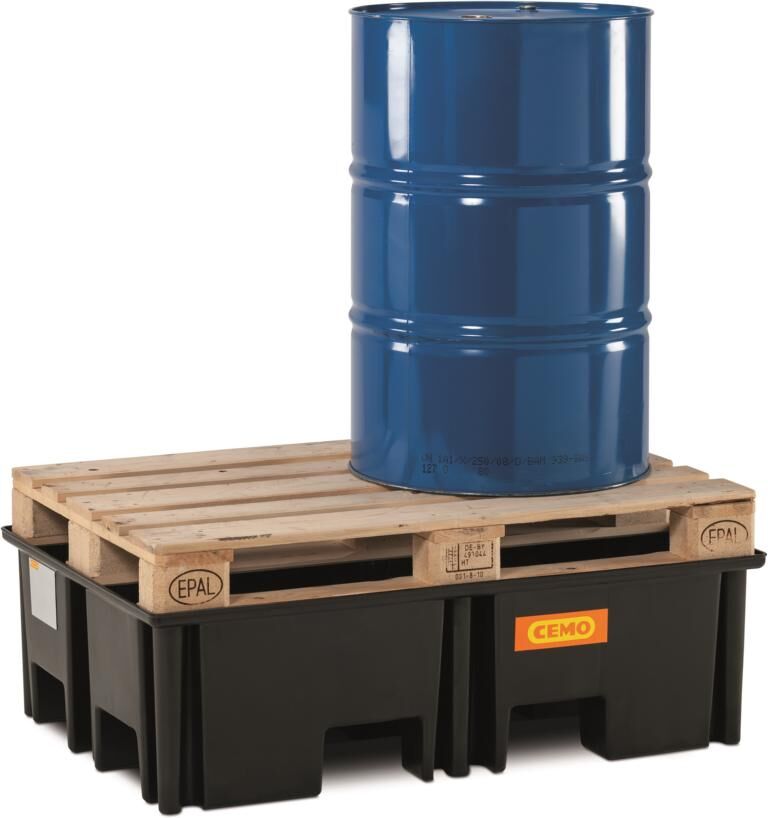 - Für die Lagerung von max. 2 x 200-Liter Fässern auf Europaletten (1200 x 800 mm)