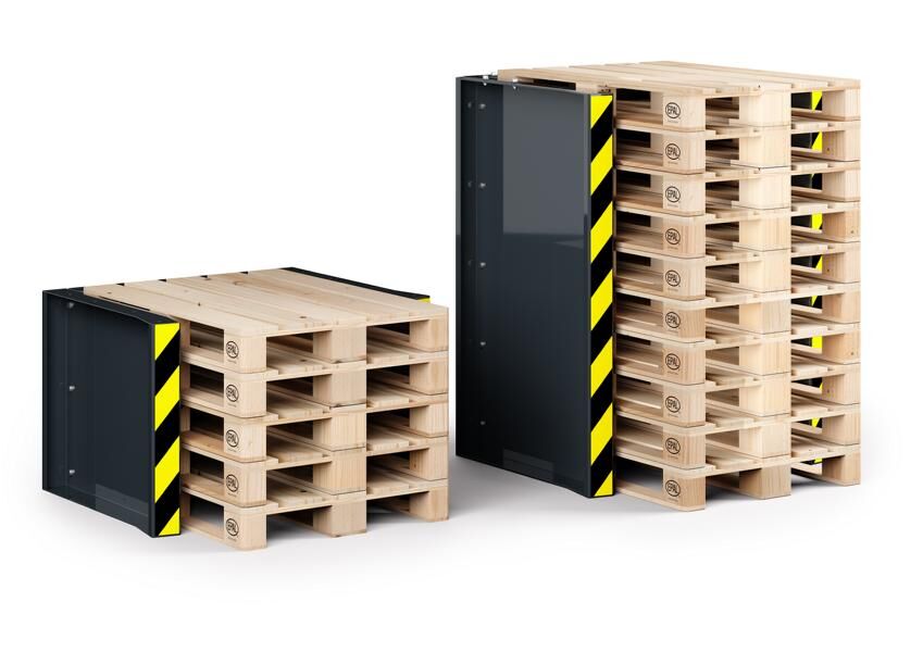 Die Module werden miteinander verschraubt, wodurch ein äußerst stabiles Konstrukt entsteht. So können bis zu 15 leere Paletten jederzeit sicher und ordentlich gelagert werden. Es besteht die Möglichkeit, die Station nachträglich zu erhöhen, um zusätzlichen Platzbedarf zu decken.