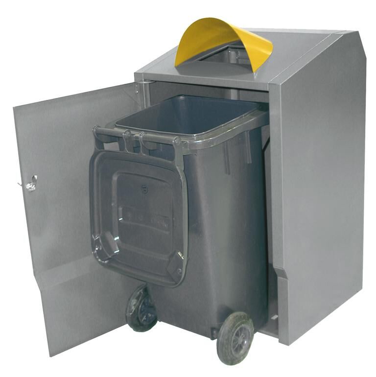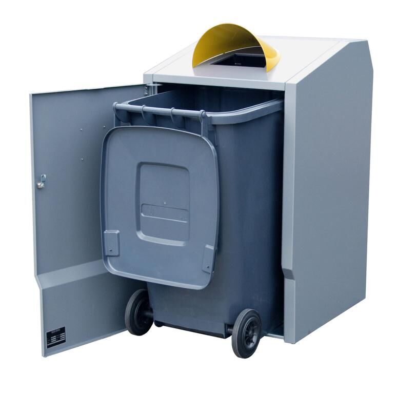 Unsere Umhausungen für Müllbehälter Typ Secomat sind speziell gefertigt für das optisch ansprechende Unterstellen von Müllgroßbehältern, da sie eine angenehmere Optik für den Einsatzort bieten. Sie sind sowohl für klassische Mülltonnen (120 L & 240 L), als auch für große Müllcontainer (1100 L) verfügbar. Für die Mülltonnen gibt es zwei Varianten. Die erste Ausführung hat eine Einwurföffnung, welche durch eine Haube geschützt wird. Das zweite Modell verfügt über eine abschließbare Einwurfklappe mit Griffmulde, welche mit Gasdruckfedern für ein leichtgängiges Öffnen und Schließen ausgestattet ist. Durch die abschließbare Einwurfklappe kann gewährleistet werden, dass nur bestimmte Personen ihren Müll entsorgen können, wie z.B. Hausmieter, Mitarbeiter eines Firmengeländes,... etc. Die Boxen können sowohl einzeln, oder auch als große Sammelstationen aufgestellt werden.