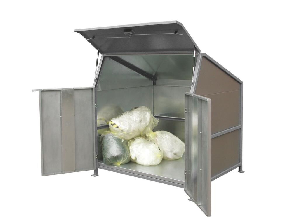 Unsere Umhausungen für Müllbehälter Typ Secomat sind speziell gefertigt für das optisch ansprechende Unterstellen von Müllgroßbehältern, da sie eine angenehmere Optik für den Einsatzort bieten. Sie sind sowohl für klassische Mülltonnen (120 L & 240 L), als auch für große Müllcontainer (1100 L) verfügbar. Für die Müllcontainer gibt es zwei Varianten. Die erste Ausführung hat ein abschließbares Dach mit zwei integrierten Einwurföffnungen (auf Wunsch abschließbar) und eine Doppelflügeltür. Das zweite Modell verfügt über ein Dach mit einer großen abschließbaren Einwurfklappe. Diese ist mit einer Griffmulde und mit Gasdruckfedern für ein leichtgängiges Öffnen und Schließen ausgestattet. Durch die abschließbare Einwurfklappe kann gewährleistet werden, dass nur bestimmte Personen ihren Müll entsorgen können, wie z.B. Hausmieter, Mitarbeiter eines Firmengeländes,... etc. Die Boxen können sowohl einzeln, oder auch als große Sammelstationen aufgestellt werden. Um die Behälter noch individueller einsetzen zu können, kann man diese Ausführung mit Seitenwänden, Türen und einem Boden ergänzen.