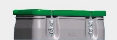 Der brandklassifizierte Deckel wird mit einer PU-Dichtung ausgestattet und ist dadurch licht- und luftdicht. Dadurch ist die Box auch für feuchtigkeitsempfindliche Stoffe geeignet. Den Deckel gibt es in verschiedenen Farben: Orange (11457), Rot (11458), Grün (11459), Blau (11460). Dazu verfügt der Deckel über einen abschließbaren Mechanismus mit Metallbügel und Arretierfeder.