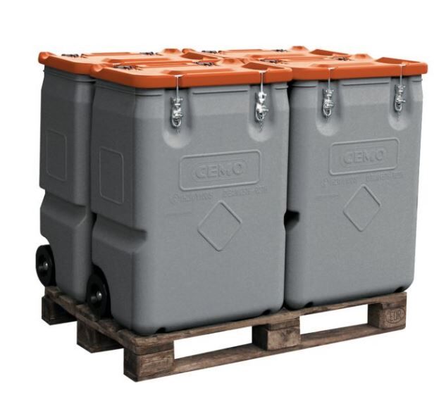 Diese stabilen Boxen ermöglichen eine saubere und sichere Lagerung von gefährlichen, festen Gütern der Verpackungsgruppe 2 - 3. Sie bieten ein Fassungsvolumen von 200 Litern. Die Boxen überzeugen durch ihr geringes Eigengewicht von 15 kg und lassen sich auch gefüllt noch gut handhaben. Durch den speziell geformten Deckel kann man die Boxen ideal zweilagig übereinander stapeln. Insgesamt bekommt man 8 Boxen auf einer Europalette gestapelt. Aufgrund der integrierten Sicken im Korpus wird das Entleeren mit dem Drehkranzstapler ermöglicht. Dieser Sammelbehälter ist ideal geeignet für Abfälle und Werkstoffe z. B. Ölbindemittel, Farbreste etc oder auch brennbare und umweltgefährdende Stoffe. Aber auch als Bereitstellungs- und Transportbehälter für die Wiederaufbereitung, z. B. Putzlappen. Ein vorschriftsmäßiger Transport ist ebenfalls möglich bei Beachtung der ADR-, RID- und IMDG-Code Vorschriften.