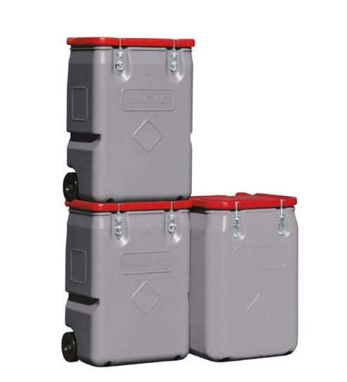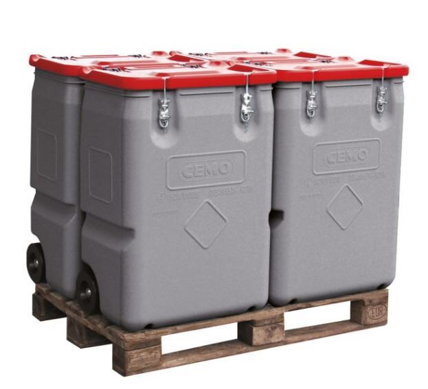 Diese stabilen Boxen ermöglichen eine saubere und sichere Lagerung von gefährlichen, festen Gütern der Verpackungsgruppe 2 - 3. Sie bieten ein Fassungsvolumen von 200 Litern. Die Boxen überzeugen durch ihr geringes Eigengewicht von 15 kg und lassen sich auch gefüllt noch gut handhaben. Durch den speziell geformten Deckel kann man die Boxen ideal zweilagig übereinander stapeln. Insgesamt bekommt man 8 Boxen auf einer Europalette gestapelt. Aufgrund der integrierten Sicken im Korpus wird das Entleeren mit dem Drehkranzstapler ermöglicht. Dieser Sammelbehälter ist ideal geeignet für Abfälle und Werkstoffe z. B. Ölbindemittel, Farbreste etc oder auch brennbare und umweltgefährdende Stoffe. Aber auch als Bereitstellungs- und Transportbehälter für die Wiederaufbereitung, z. B. Putzlappen. Ein vorschriftsmäßiger Transport ist ebenfalls möglich bei Beachtung der ADR-, RID- und IMDG-Code Vorschriften.
