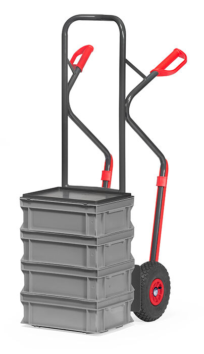 - Mit 2 Räder (Ø 260 x 85 mm), Räder mit Luft-Bereifung auf Kunststoff-Felgen, Naben mit Rollenlager