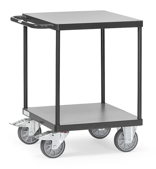 Unsere fetra Transportgeräte in der GREY Edition gibt es in verschiedenen Ausführungen, darunter dieser robuste fetra Tischwagen 2496/7016.