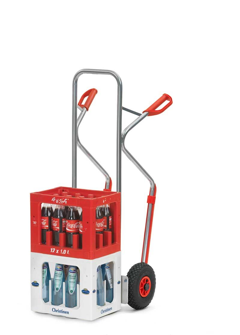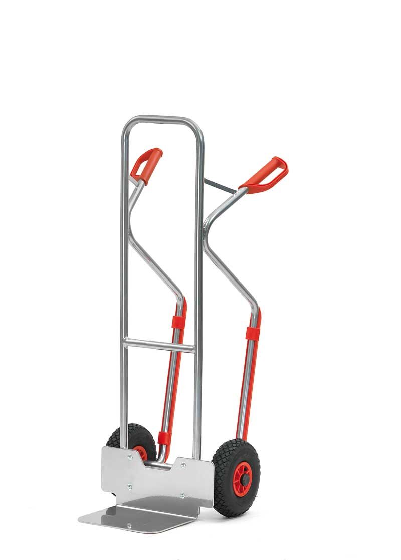 - Mit 2 Räder (Ø 260 x 85 mm), Räder mit Luft-Bereifung auf Kunststoff-Felgen, Naben mit Rollenlager