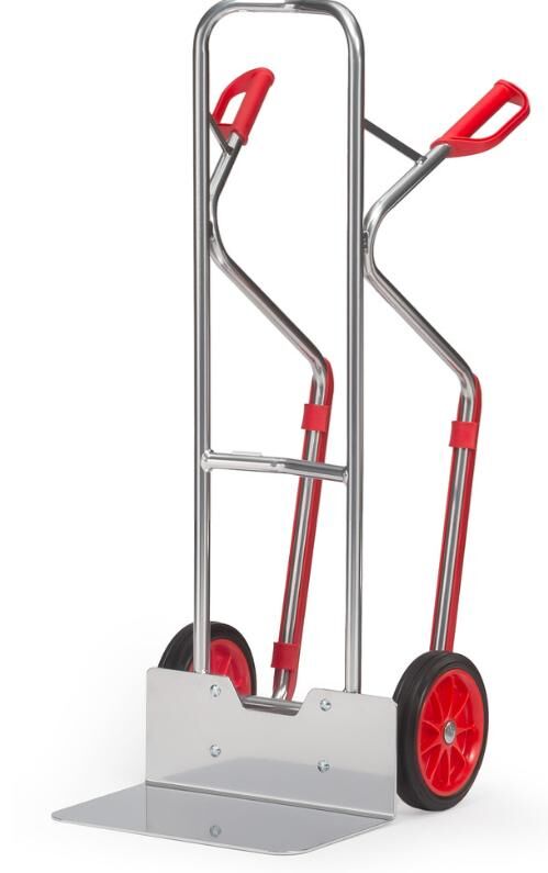 - Mit 2 Räder (Ø 250 x 60 mm), Räder mit Vollgummi-Bereifung auf Kunststoff-Felgen, Naben mit Rollenlager