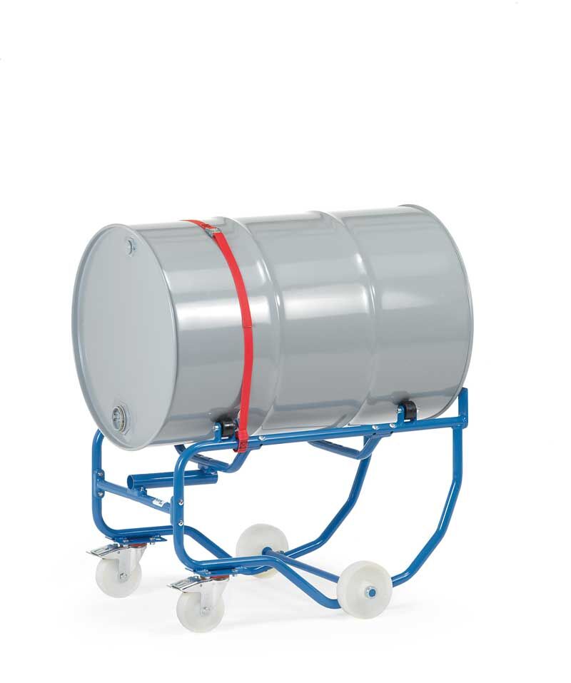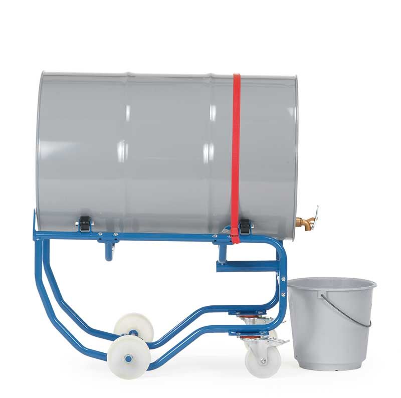 Unsere Fasskipper sind optimal für die Lagerung und Entleerung von 200-Liter-Stahlfässern geeignet. Verschraubte Stahlrohrkonstruktion mit hochwertiger Pulverbeschichtung in brilliantblau RAL 5007. Mit Spanngurt zur Fass-Sicherung.