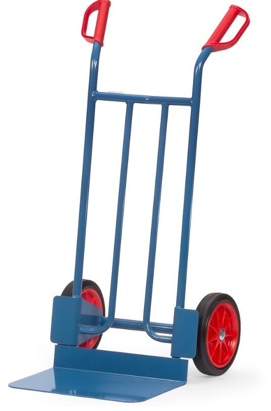 - Mit 2 Räder (Ø 250 x 60 mm), Räder mit Vollgummi-Bereifung auf Kunststoff-Felgen, Naben mit Rollenlager