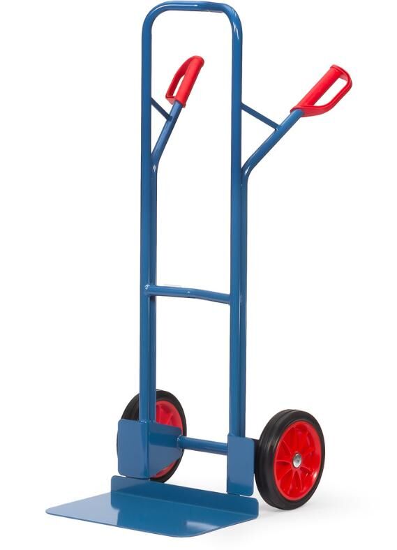 - Mit 2 Räder (Ø 250 x 60 mm), Räder mit Vollgummi-Bereifung auf Kunststoff-Felgen, Naben mit Rollenlager