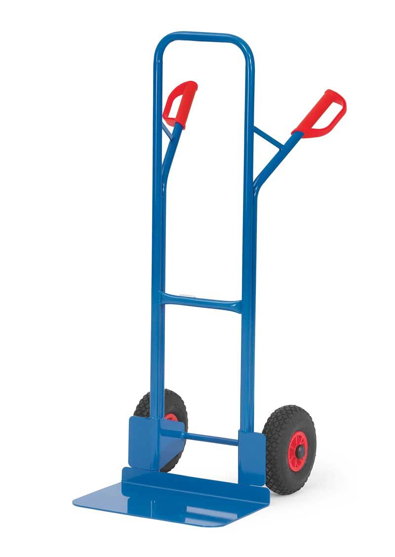 Unsere handlichen Fetra Stahlrohrkarren mit Stahlblechschaufeln gibt es in 14 Ausführungen, sodass für jeden Einsatzzweck das richtige Modell vorhanden ist. Die Karren gibt es sowohl mit Luft- als auch mit Vollgummireifen. Die Naben besitzen Rollenlager. Die Schweißkonstruktion ist äußerst stabil und in blau Pulverbeschichtet (RAL 5007). Die Stahlblechschaufeln sind abschraubbar und die Sicherheitsgriffe ermöglichen einen festen und sicheren Halt während des Betriebes. Die Bügel oben und die Querstreben sind durchgebogen, damit auch runde Güter (Rollen, Kannen, Eimer) sicher transportiert werden können.