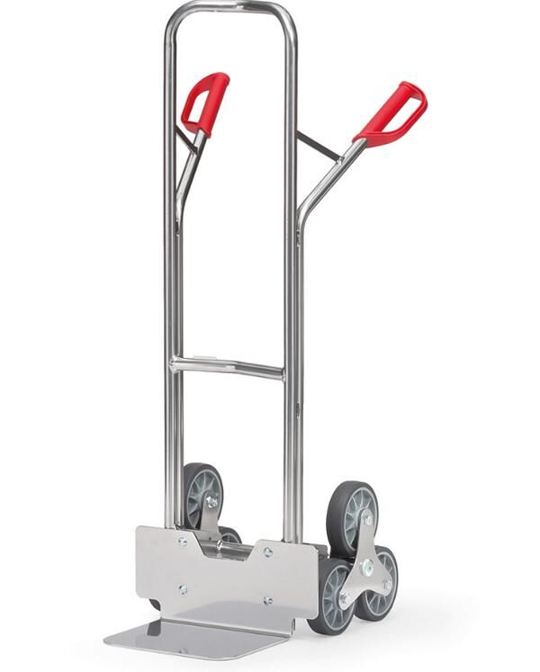 Dreiarmiger Radstern: Treppenkarren mit 2 dreiarmigen Radsternen sind vorteilhaft bei häufigen Treppenfahrten und guten Bodenverhältnissen im ebenen Bereich.