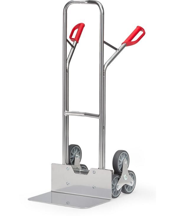 Dreiarmiger Radstern: Treppenkarren mit 2 dreiarmigen Radsternen sind vorteilhaft bei häufigen Treppenfahrten und guten Bodenverhältnissen im ebenen Bereich.