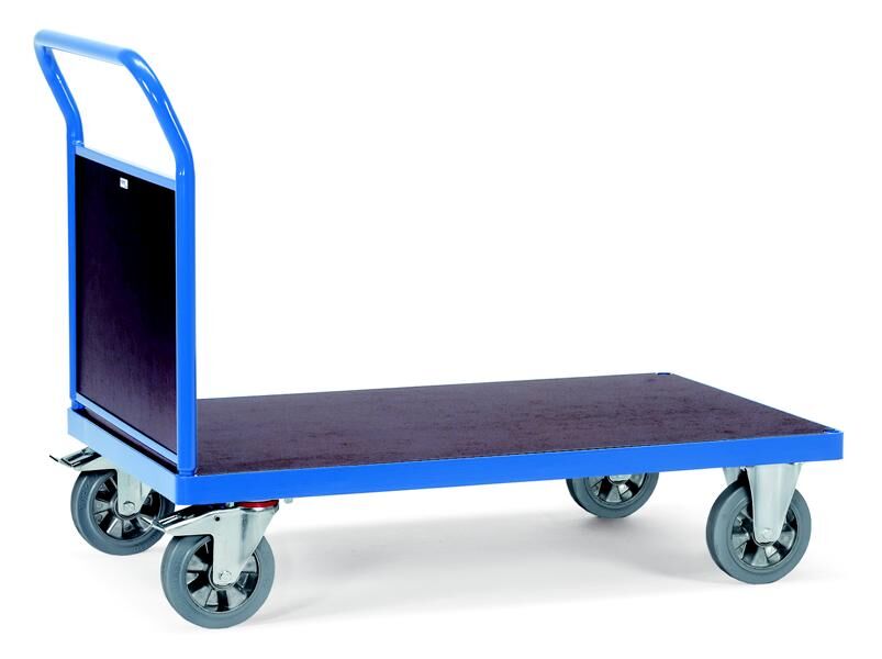 Ein multifunktionales Baukastensystem mit dem bewährten Steck- und Schraubprinzip für einen unkomplizierten, handlichen Transport bis zu 1200 kg. Dieser Super-MultiVario-Transporter lässt sich vielfach verändern, austauschen und ergänzen und ist als Basiswagen bishin zum Etagenwagen erhältlich in 4 Größen von 1000 x 700 bis 2000 x 800 mm. Elegante Rahmenkonstruktion aus "einem Guss" mit "runden Ecken". Hochwertige Pulverbeschichtung in brilliantblau RAL 5007. Im Rahmen liegende Plattformen mit wasserfester und rutschsicherer Siebdruckplatte, Stirnwände ebenfalls mit glatter wasserfester Siebdruckplatte. Serienmäßig mit 2 Lenk- und 2 Bockrollen, Räder mit Elastic-Vollgummi-Bereifung auf Alufelgen, Naben mit Rillenkugellager sorgen für eine hervorragnede Handlichkeit und einen sehr leichten Lauf. Komfortables Schieben durch geringen Rollwiderstand und hohe Elastizität. Lenkrollen mit Feststeller.