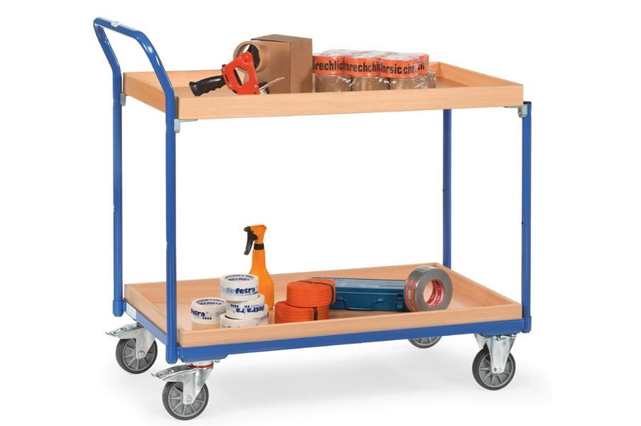 Das multifunktionale Fetra Baukastensystem mit dem bewährten Steck- und Schraubprinzip für einen unkomplizierten, handlichen Kleintransport bis zu 300 kg. Diese Tischwagen lassen sich vielfach verändern, austauschen und ergänzen. Elegante Rahmenkonstruktion aus "einem Guss" mit "runden Ecken". Die Systemteile werden einfach in den Basiswagen eingesteck und festgeschraubt. Eine absolut sichere Verbindung von Rahmen und Stützrohren. Im Rahmen liegende Holzwerkstoffplatten, Oberfläche Buchendekor. Alternativ auch mit Stahlblech-Ladefläche oder Stahlblechwannen. Serienmäßig mit 2 Lenk- und 2 Bockrollen, Räder mit TPE-Bereifung, Naben mit Rillenkugellager. Feststeller an den Lenkrollen. Hochwertige Pulverbeschichtung in brilliantblau RAL 5007.