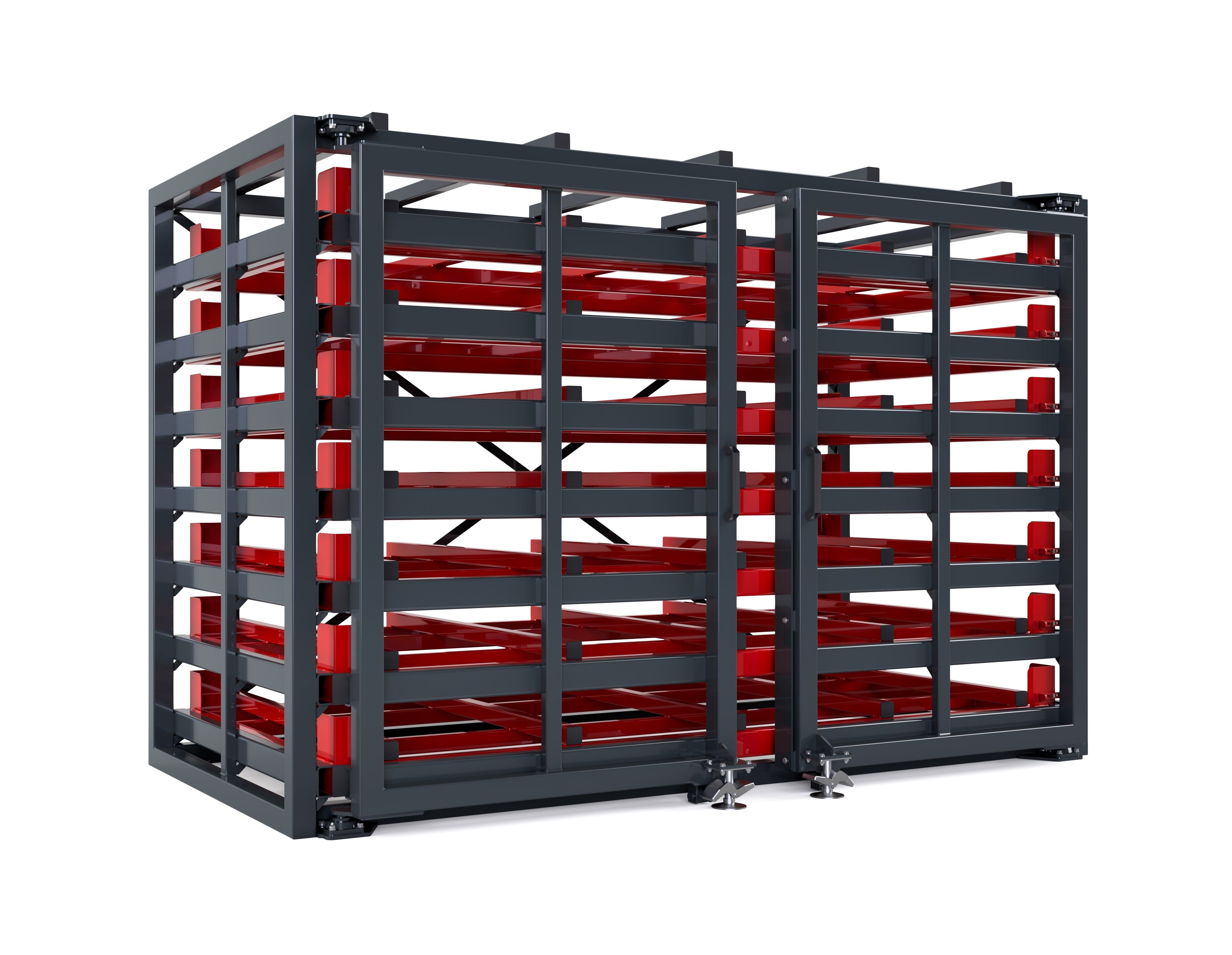 - Platzsparende und effiziente Lagerung von Blechpaketen