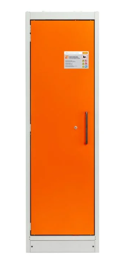 Das Laden und Lagern von Gebinden und entzündbaren Flüssigkeiten darf nur unter Berücksichtigung des Brandschutzes durch geführt werden. Ausgestattet mit allen relevanten Sicherheitsvorkehrungen lassen sich die Entzündungsgefahr (,,Thermal Runaway'') und mögliche Brandfolgen auf ein Minimum reduzieren. Der Sicherheitsschrank PROline 6/20 ist eine hochmoderne Lösung zur sicheren Lagerung von entzündbaren Flüssigkeiten und Gebinden bis 30 Liter, die den neuesten Sicherheitsstandards entspricht. Er erfüllt den neuesten Stand der DIN EN 14470-1 und bietet 90 Minuten Feuerwiderstand gemäß dieser Norm. Der Schrank ist mit einer sicheren 2-Punkt-Verriegelung ausgestattet, die optimalen Zugriffschutz bietet. Beim Schließen der Tür wird diese automatisch verriegelt und im Brandfall schließen sich die Türen selbstständig. Zudem verfügt der Schrank über eine serienmäßige Türfeststellung in geöffnetem Zustand, was die Handhabung erleichtert. Ein besonderes Sicherheitsmerkmal ist der Auflastnachweis für die Gewichtskraft des Ventilators auf der Schrankdecke. Die 3 höhenverstellbaren Wannenböden haben eine Tragkraft von 75 kg und ein Rastermaß von 32 mm, was eine flexible Anpassung der Lagerfläche ermöglicht. Mit der Bodenwanne verfügen Sie so über insgesamt 4 Lagerbenen. Der Schrank ist zum Anschluss an eine technische Lüftung vorgesehen, wobei die Entlüftungsöffnung einen Durchmesser von DN75 hat. Die Unterfahrbarkeit und höhenverstellbare Füße sowie die abnehmbare Sockelblende erleichtern die Integration des Schranks in unterschiedliche Lagerumgebungen und gewährleisten einen flexiblen Umgang in Ihrem Betrieb. Ein Erdungsanschluss an der Schrankaußenseite verhindert Zündgefahren infolge elektrostatischer Aufladung.