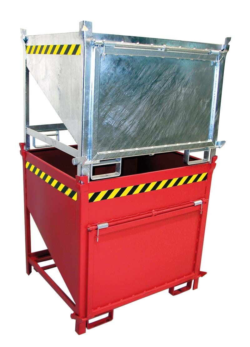 - Mit stirnseitige Klappe, über Zugseil vom Staplersitz zu entriegeln, Öffnung (BxH) = 1050 x 650 mm
