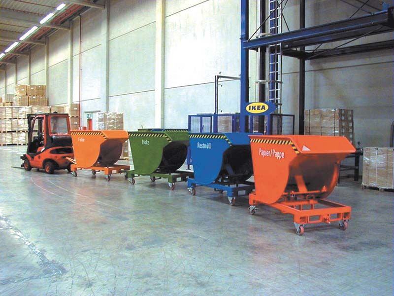 Der Kippbehälter Typ BKM zeichnet sich durch seinen Abrollmechanismus und dem günstigen Lastschwerpunkt aus. Das Entleeren des Behälters ist in jeder Höhe per Seilzug vom Staplersitz möglich.