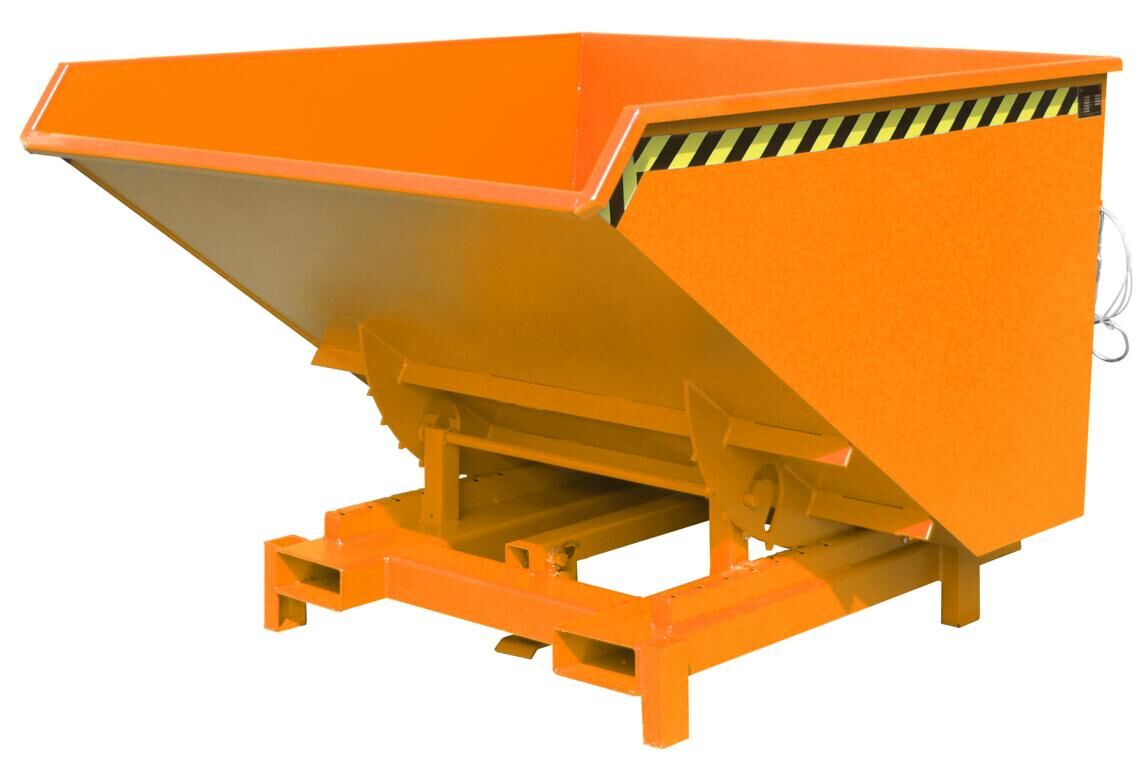 Der Kippbehälter Typ SK zeichnet sich durch seine erhöhte Tragfähigkeit sowie dem Abrollmechanismus mit automatischer Entriegelung und dem günstigen Lastschwerpunkt aus. Dieser Behältertyp wurde speziell für schwere Güter konzipiert. Das Entleeren des Behälters erfolgt entweder mittels automatischer Entriegelung durch Aufsetzen des Auslösefußes auf Containerrand oder durch manuelle Entriegelung durch Seilzug.