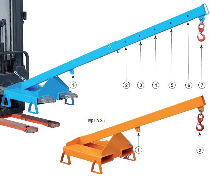 Der Lastarm (auch Kranarm genannt) Typ LA/LAT ist das ideale Anbaugerät um die Reichweite Ihres Gabelstaplers zu vergrößern. Ob in starrer oder höhenverstellbarer Ausführung sowie Tragfähigkeiten bis 1000 oder 5000 kg stehen Ihnen bei uns zur Auswahl. Machen Sie Ihren Gabelstapler doch einfach zum Kran!