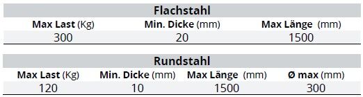 - Max. Länge Stahl-Flach- / Rundmaterial: 1.500 mm (max. Ø 300 mm)