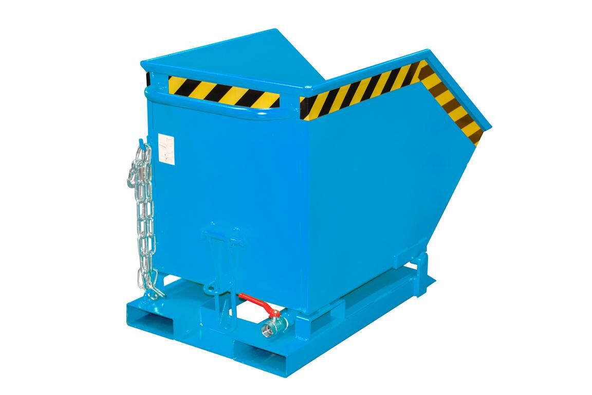 Unsere Späne-Kippmulden Typ SKK / SKN sind ideal zum Trennen der Flüssigkeiten von Feststoffen sowie Sammeln und Entsorgen von Schüttgütern und Industrieabfällen jeder Art. Diese Mulden bieten wir Ihnen in verschiedenen Varianten an, ob mit kastenförmiger Mulde (Typ SKK) oder mit niedriger Mulde (Typ SKN). Ein stabiler Grundrahmen mit Einfahrtaschen ermöglicht die Aufnahme mit den Gabelzinken. Beide Typen können optional mit Lenk- und Bockrollen oder einem Deckel ausgestattet werden. Durch die Rollen ist auch der innerbetriebliche Transport ohne Stapler möglich. Größen von 250 - 1000 Liter sind verfügbar. Zusätzlich sind diese Kippbehälter serienmäßig öl- und wasserdicht verschweißt und verfügen über ein Siebblech und einem 1" Ablasshahn zum Ablassen der Flüssigkeiten. Die Entleerung der Mulde erfolgt problemlos per Hand mittels Handgriffes an der Oberkante des Behälters. Eine Kettensicherung sichert den Container gegen unbeabsichtigtes Abrutschen.