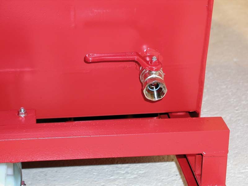 Der Spänebehälter mit Siebblecheinsatz, 1" Ablasshahn und Rollen. Speziell zum Sammeln und Trennen der Flüssigkeiten von Feststoffen.