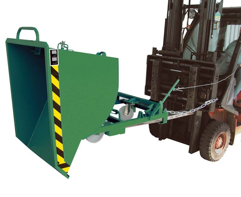Der Spänebehälter Typ SKM wurde speziell konzipiert für das Sammeln und Trennen der Flüssigkeiten von Feststoffen. Dieser Behälter verfügt über einen Siebblecheinsatz mit einem Lochdurchmesser von 3 mm. Das Ablassen der Flüssigkeiten erfolgt durch einen 1" Ablasshahn. Das Entleeren des Behälters ist in jeder Höhe per Seilzug vom Staplersitz möglich. Mit Abrollmechanismus für sanftes Kippen.