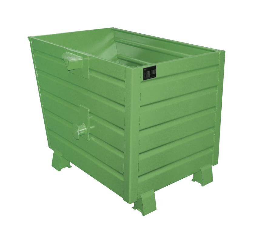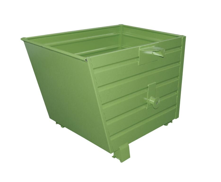 Unsere Kippbehälter BSK / BSK-R werden aus profiliertem Stahlblech gefertigt und eignen sich optimal für robuste Beanspruchungen, wie die Trennung, Sammlung und Entsorgung von Wertstoffen. Die Entleerung erfolgt über eine Traverse, in die der Stapel-Kippbehälter eingehängt wird (siehe BST, BST-U oder BKT) und kann per Seilzug vom Staplersitz aus betätigt werden. Für einen optimalen Schutz der Oberfläche ist dieser Behälter in unseren Standardfarben oder auch in verzinkter Ausführung erhältlich. Sonderausführungen wie z.B. andere Abmessungen, Wunschfarben oder Edelstahlausführung können bei uns angefragt werden.