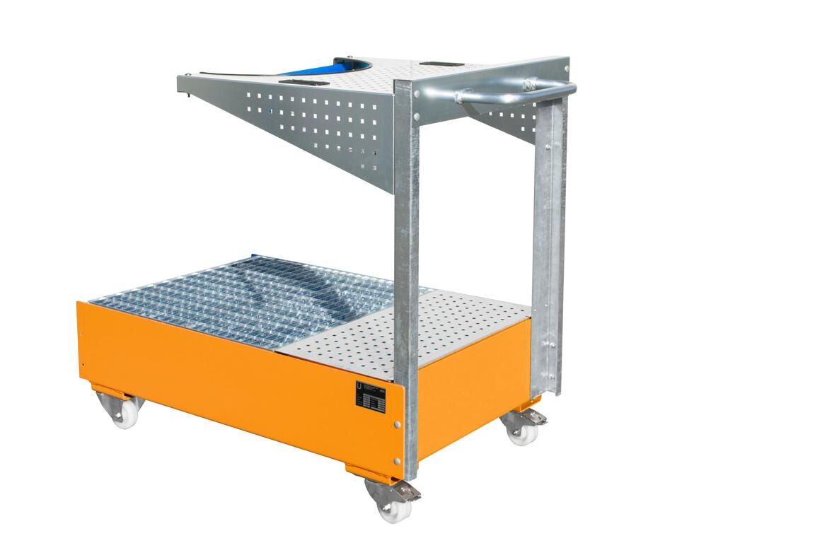 Unsere fahrbaren Auffangwannen Typ LPW sind aus Stahl und speziell zum mobilen, sicheren und einfachem Abfüllen von Ölen etc. an verschiedenen Verbrauchsstellen aus 200-l-Fässern konzipiert. Die robuste Wanne wird mit einer Lochplattenkonsole, einem Haltegurt und einer praktischen Montageplatte ergänzt. Durch die Rollen (Ø 100 mm, Bauhöhe 125 mm) ist die Auffangwanne vielseitig und individuell einsetzbar. Geeignet für die Lagerung von entzündbaren Flüssigkeiten der GHS-Kategorien 1-3 (bzw. den Gefahrensymbolen F / F+) sowie gewässergefährdenden Flüssigkeiten der GHS-Kategorien 1-4 (bzw. WGK 1-3).