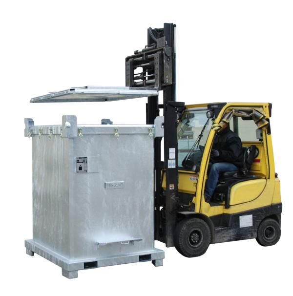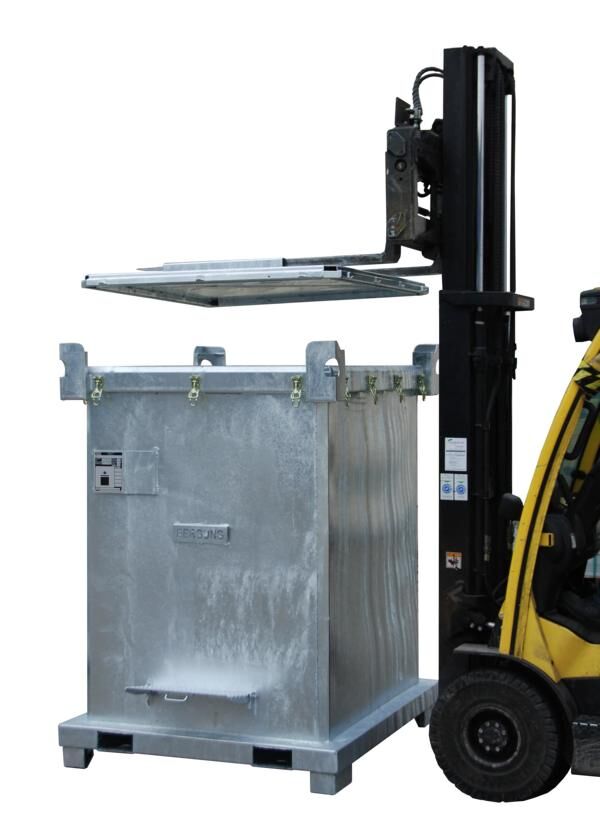 Vier verschiedene Großverpackungen wurden entwickelt, um unterschiedliche Mengen bergen zu können – von 800 bis 2800 l. Die Innenmaße (LxBxH) von 1036x836x925 mm (Bergegroßbehälter TYP SAG 800), 1400x1200x925 mm (TYP SAG 1500), 1400x1200x1250 mm (Berge-Container SAG 2100) und 1400x1200x1639 mm (SAG 2700) wurden auch auf die Bergung von Fässern, IBC und IBC mit Bodenauslauf abgestimmt. Die feuerverzinkten Stahlbehälter basieren auf den etablierten Sonderabfall-Behältern Typ SAP und sind zugelassen für flüssige, pastöse und feste Stoffe der Verpackungsgruppen II und III. Den erhöhten Anforderungen an die Sicherheit wird durch 12 Deckelverschlüsse – davon einer abschließbar, einer speziellen Dichtung und Stabilisierungsblechen Rechnung getragen. Stabile Stapelecken ermöglichen das sichere Stapeln, so dass eine platzsparende Lagerung realisiert werden kann. Durch den standardmäßig aufgebrachten Schriftzug „Bergung“ sind die Behälter dabei eindeutig als solche erkennbar. Durchgehende Einfahrtaschen für Gabelzinken gewährleisten das einfache Handling bei der Be- und Entladung des LKW. Alle Größen sind optional mit einem säurebeständigen Anstrich und mit PE-Folienbeutel lieferbar.