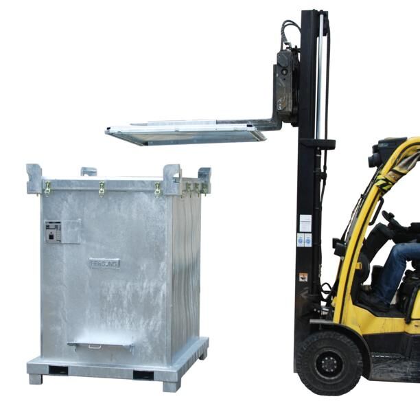 Neben diesen sicherheitsrelevanten Faktoren zeichnet sich der Bergegroßbehälter SAG 800 mit einem Fassungsraum von 800 l durch seine logistischen Aspekte aus. Dieser wird nach DIN 30741 Teil 1 gefertigt und lässt sich mit seinen Grundmaßen 1200 x 1000 mm problemlos in die vorhandene Logistik integrieren. Eine selbsttätige Deckelarretierung bei 270° und eine Deckelstütze bei 70° runden das durchweg positive Bild ab.