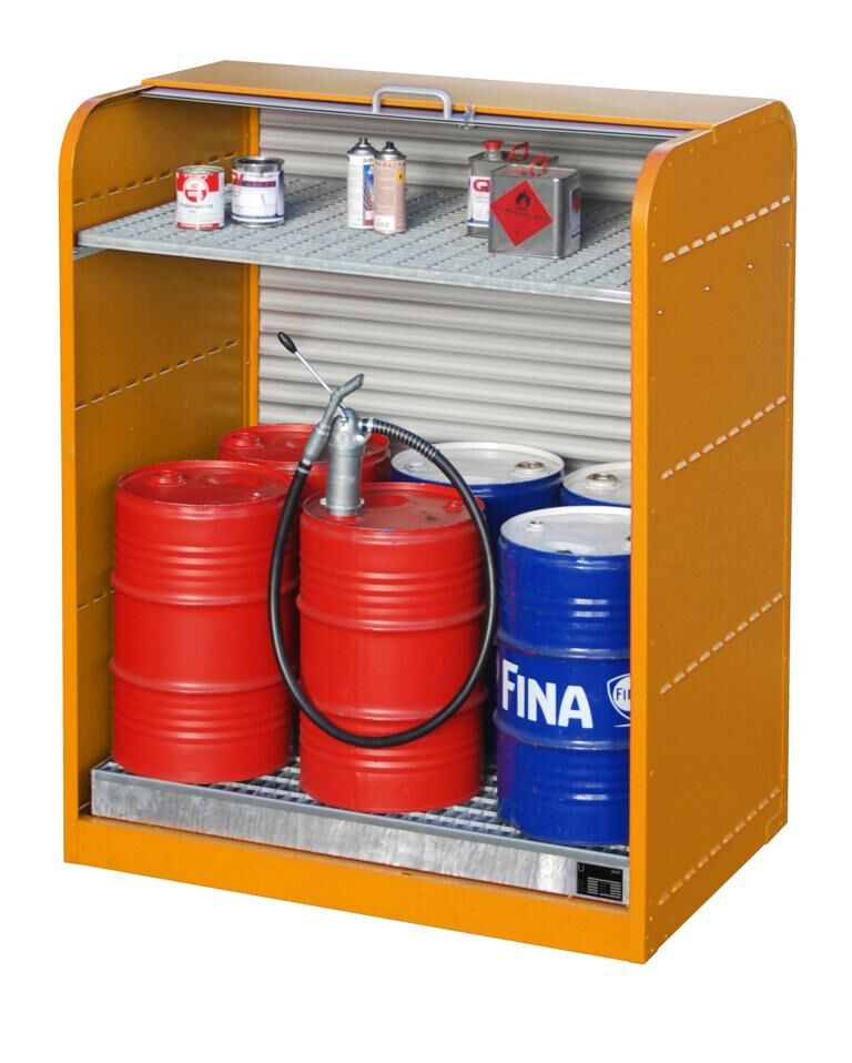 Unsere Gefahrstoff-Rolladenschränke sind optimal für die sichere und vorschriftsgemäße Lagerung von 60- und 200-l-Fässern und / oder Kleingebinden. Sie sind sowohl im Innen- als auch im Außenbereich nutzbar und abschließbar mittels eines Zylinderschloss. Es sind 4 verschiedene Ausführungen des RSG verfügbar, welche alle mit einem Alu-Rollo ausgestattet sind. Natürlich bestehen alle Schränke aus einer stabilen Stahlblech-Konstruktion und sind alle TÜV-Geprüft nach StawaR.