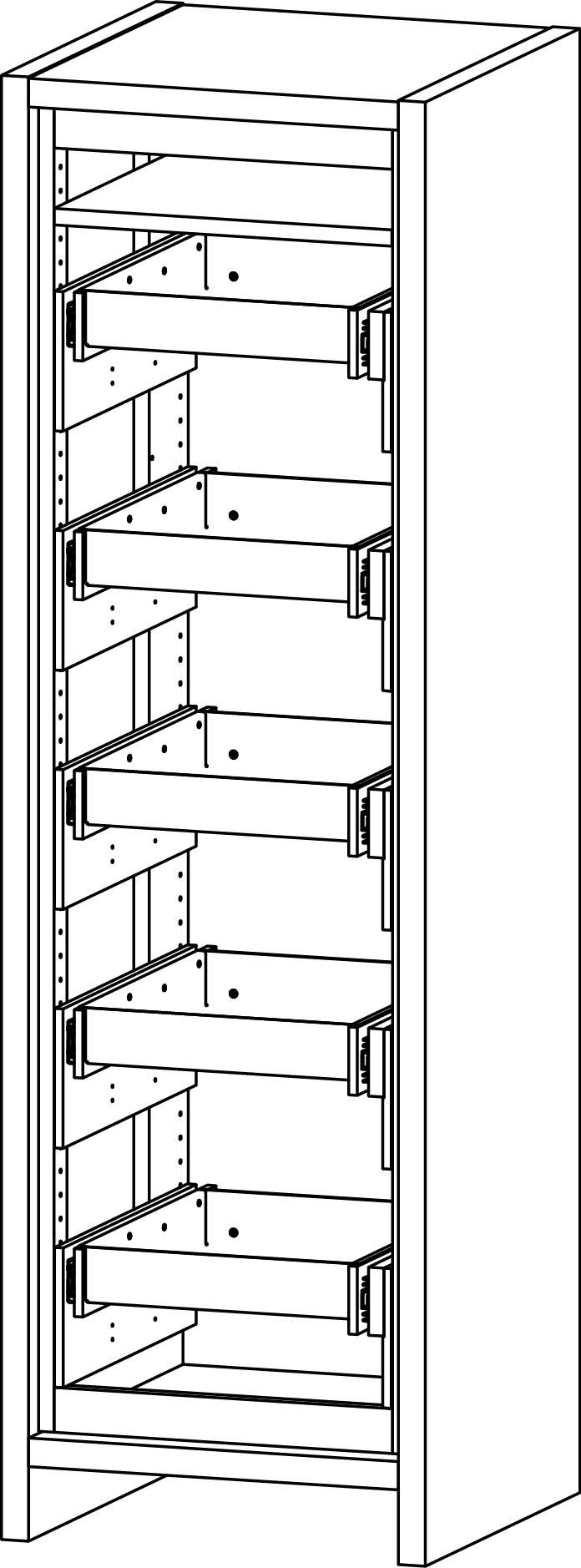 - 5 Vollauszüge (Tragkraft 75 kg) aus Stahlblech gepulvert in lichtgrau RAL 7035