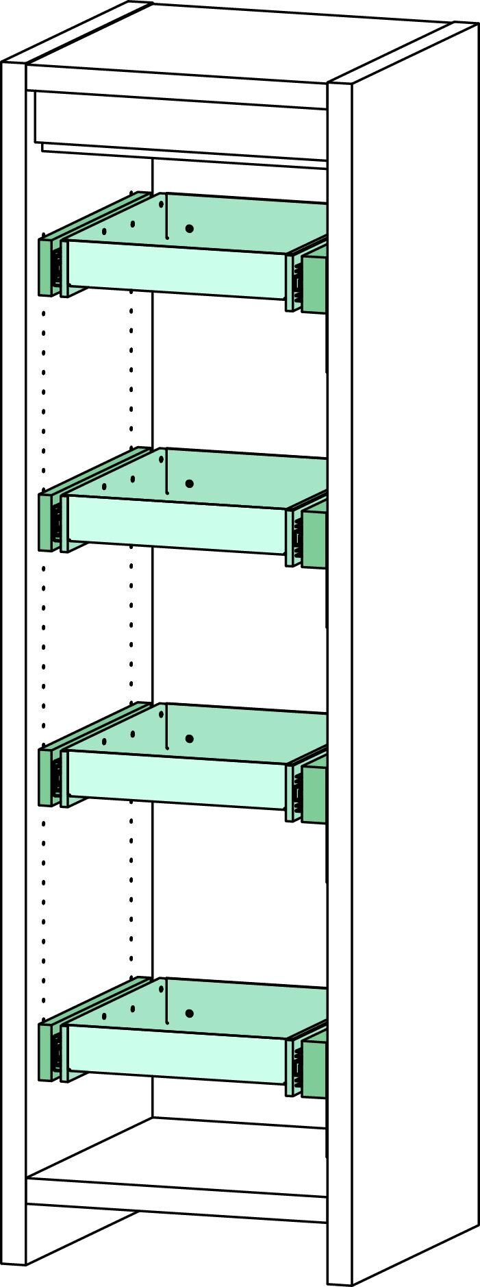 - Innenmaße: BxTxH 516 x 483 x 1603 mm