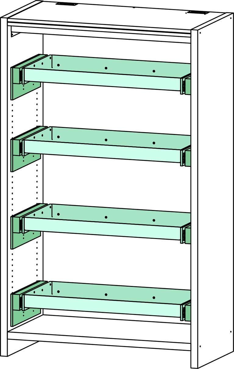 - 4 Vollauszüge (Tragkraft 75 kg) aus Stahlblech gepulvert in lichtgrau RAL 7035