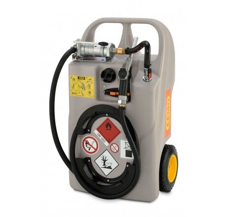Die Trolleys werden mit einer Kurbelpumpe (0,38 L / Umdrehung) oder mit einer selbstansaugenden CENTRI SP30 Elektropumpe (30 L / min) ausgestattet. Die Kurbelpumpe ist mit einem 3 m Abgabeschlauch DN 19 und einem Zapfventil versehen. Die CENTRI SP30 Elektropumpen sind extrem leise. Außerdem sind sie mit einer Automatik-Zapfpistole, einem 3 m Befüllschlauch und einem 4 m Elektrokabel versehen. Wahlweise kann die Pumpe und das Elektrokabel gegen eine Tauchpumpe (30 L / min) mit einem CAS-Akku mit Ladegerät ausgetauscht werden.