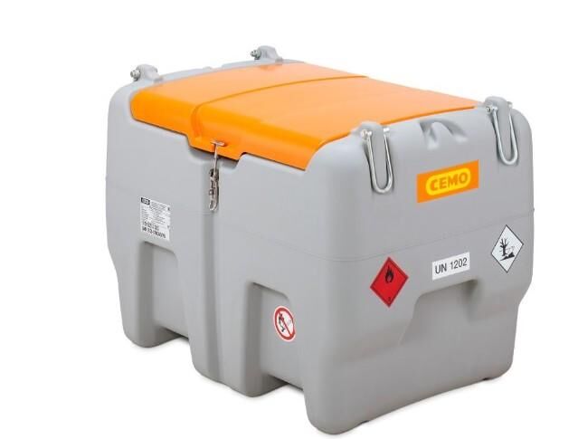 Die Cemo DT-Mobil Easy Tankanlage besteht aus einem hochwertigen und robusten Polyethylen-Behälter und bietet ein Füllvolumen von 470 Litern (200 / 470 / 620 Liter erhältlich). Ein unkomplizierter Transport wird durch Vertiefungen (200 L) bzw. Ösen (470 und 620 L) zur sicheren Befestigung mit Ratschen-Zurrgurten gewährleistet. Dazu verfügt sie über integrierte Kranösen, Staplertaschen und Tragegriffe für maximale Mobilität. Für einen komfortablen Einsatz der Tankanlagen mit Pumpen sind diese zusätzlich mit einem Klappdeckel (je nach Ausführung), einem Zapfpistolenhalter, einem Füllstutzen so wie Belüftung mit Druckentlastung ausgestattet. Die Transportzulassung ist auf 5 Jahre begrenzt. Danach ist die 200 Liter Ausführung noch für den Transport zum unmittelbaren Verbrauch nach ADR 1.1.3.1 c) zugelassen. Die Lieferung erfolgt komplett montiert.