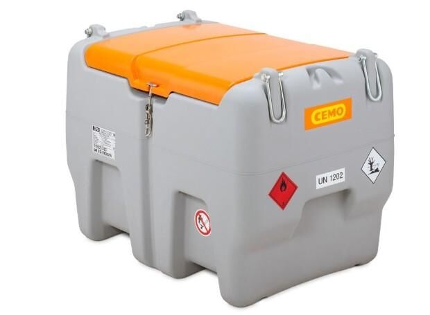 Die Cemo DT-Mobil Easy Tankanlage besteht aus einem hochwertigen und robusten Polyethylen-Behälter und bietet ein Füllvolumen von 470 Litern (200 / 470 / 620 Liter erhältlich). Ein unkomplizierter Transport wird durch Vertiefungen (200 L) bzw. Ösen (470 und 620 L) zur sicheren Befestigung mit Ratschen-Zurrgurten gewährleistet. Dazu verfügt sie über integrierte Kranösen, Staplertaschen und Tragegriffe für maximale Mobilität. Für einen komfortablen Einsatz der Tankanlagen mit Pumpen sind diese zusätzlich mit einem Klappdeckel (je nach Ausführung), einem Zapfpistolenhalter, einem Füllstutzen so wie Belüftung mit Druckentlastung ausgestattet. Die Transportzulassung ist auf 5 Jahre begrenzt. Danach ist die 200 Liter Ausführung noch für den Transport zum unmittelbaren Verbrauch nach ADR 1.1.3.1 c) zugelassen. Die Lieferung erfolgt komplett montiert.