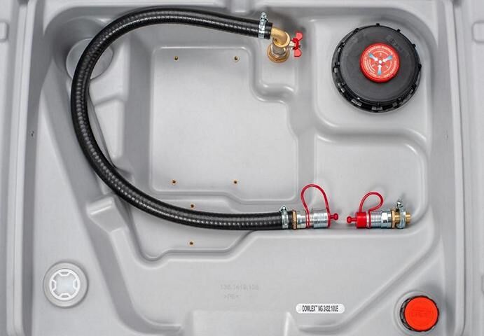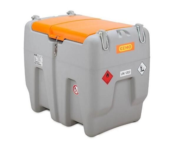 Die Cemo DT-Mobil Easy Tankanlage besteht aus einem hochwertigen und robusten Polyethylen-Behälter und bietet ein Füllvolumen von 620 Litern (200 / 470 / 620 Liter erhältlich). Ein unkomplizierter Transport wird durch Vertiefungen (200 L) bzw. Ösen (470 und 620 L) zur sicheren Befestigung mit Ratschen-Zurrgurten gewährleistet. Dazu verfügt sie über integrierte Kranösen, Staplertaschen und Tragegriffe für maximale Mobilität. Für einen komfortablen Einsatz der Tankanlagen mit Pumpen sind diese zusätzlich mit einem Klappdeckel (je nach Ausführung), einem Zapfpistolenhalter, einem Füllstutzen so wie Belüftung mit Druckentlastung ausgestattet. Die Transportzulassung ist auf 5 Jahre begrenzt. Danach ist die 200 Liter Ausführung noch für den Transport zum unmittelbaren Verbrauch nach ADR 1.1.3.1 c) zugelassen. Die Lieferung erfolgt komplett montiert.