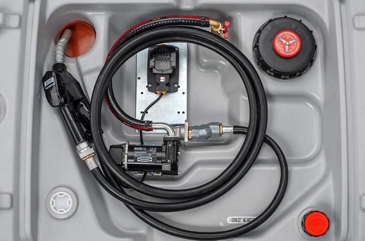 Diese Tankanlagen werden mit einer selbstansaugenden Cematic 3000/18 Pumpe (18V, 40 Liter/min.) ausgestattet. Es besteht die Möglichkeit einen eigenen bereits vorhandenen CAS-Akku mit Ladegerät zu verwenden für einen mobilen und kabellosen Gebrauch.