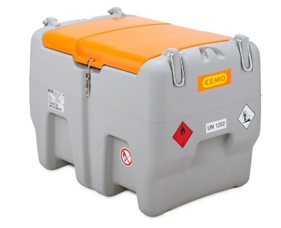 Die Cemo DT-Mobil Easy Tankanlage besteht aus einem einwandigem Polyethylenbehälter mit Klappdeckel und bietet ein Füllvolumen von 470 Litern. Ein Zapfpistolenhalter, ein Füllstutzen so wie die Belüftung mit Druckentlastung sind integriert. Dazu verfügt sie über Kranösen, Staplertaschen und Tragegriffe, welche einen mühelosen Transport gewährleisten. Die Lieferung erfolgt komplett montiert.