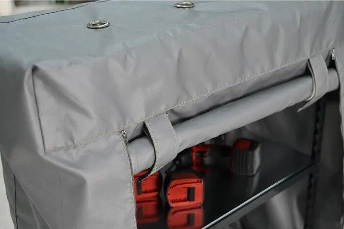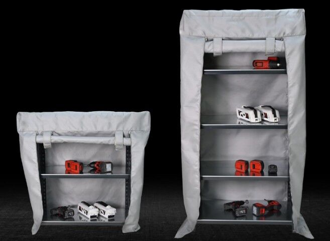 Das VLITEX Akku-Safe Regal ist in zwei Größen erhältlich (Typ M & Typ L) und ist eine zuverlässige Lösung für die sichere Lagerung und das gleichzeitige Laden von Li-Akkus in Werkstätten, Garagen sowie industriellen Umgebungen. Es besteht aus einem hochtemperaturbeständigen Spezial-Glasfasergewebe mit Silikonbeschichtung, das sowohl säure- als auch chemikalienresistent ist. Durch einen Rollmechanismus mit Reißverschluss wird ein unkompliziertes und schnelles Schließen und Öffnen gewährleistet. So wird die Umgebung zuverlässig vor möglichen Bränden und Rauchentwicklung geschützt. Das passende Zubehör finden Sie hier!
